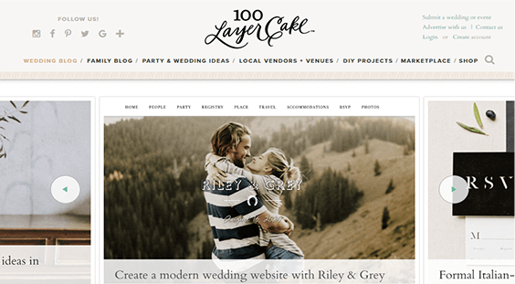 100 Layer Cake is a lifestyle brand and blog providing wedding inspiration, planning resources, and a marketplace for wedding-related products.